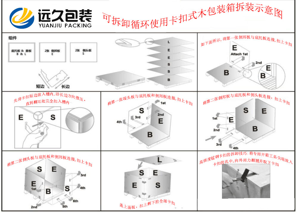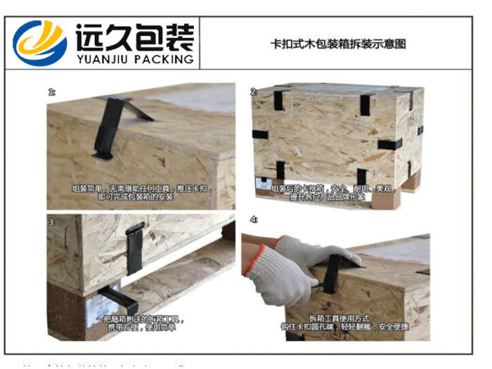 隨著我國包裝業在近十年中的迅猛發展,木箱包裝的功能也從傳統的、單一的運輸保護功能逐步轉變為具有整體概念的、綜合類型的包裝方案,而且也有了以客戶需求科價值鏈為導向的包裝解決方案。 對于被包裝產品來說,對其進行運輸包裝其實就是要基于被包裝產品及木箱包裝本身的生命周期,充分考慮產品及木箱包裝制作與供應、倉儲與運輸、從包裝裝配到廢棄物的回收與處理等全部過程中,進行一個整體的包裝解決方案設計。 在我國也針對木箱包裝設計制訂了國家標準,GB/T 19451-2001《運輸包裝設計程序》,規定了運輸木箱包裝設計的基本要求、方法和一般程序。 工業木箱包裝主要是為了便于運輸裝卸和倉貯,卡扣木箱作為一款包裝容器,一經上市就受到廣大用戶的喜愛,是因為它有很多的優點,傳統的木箱一般通過釘子進行固定,裝卸不便,且一次使用后易對其造成損壞,不便多次使用。 在拆卸、拼裝、運輸貨物的過程中,金屬件對膠合板的造成嚴重的破壞,金屬件與板材的連接存在越來越大的空隙,箱板之間的連接不夠緊密,木箱的使用壽命變短。卡扣木箱包裝結構簡單,快裝易拆,它不同于柵欄式花格木箱每一個部件都需要采用鐵釘連接,卡扣木箱的箱體只有六塊,組裝時只需將六塊箱板用高強度錳鋼連接件連接。 木箱包裝是運輸包裝件的重要組成部分,在流通過程中主要起保護產品、方便運輸的作用。除了通常對木箱包裝有結構、形狀、材質等方面的要求具有一定的機械強度,以保護產品在裝卸運輸和倉儲條件下完好無損。還應專注于各類包裝材料功能性、生產工藝性及相關理論方面的東西。 卡扣木箱包裝廠家選用的材料均為經過高溫處理過的膠合板或定向刨花板(也叫OSB),出口免熏蒸是它的優勢;卡扣木箱包裝在組裝封箱時,應防止已長霉材料和有機物質混入包裝件中,在包裝件運輸過程中力求干燥和通風,發現卡扣包裝箱內的包裝件有長霉現象應及時處理,以免傳染其它包裝件。根據GD/T 4768-1995標準,包裝材料耐霉程度可分為以下三種: 1、耐霉材料:此類材料大部分為人工合成材料與無機材料,不能給霉菌提供營養物質。 2、半耐霉材料:這類材料應用最廣,由耐霉與不耐霉材料混合而成,耐霉性不穩定,其耐霉程度主要取決于組成物質、添加劑以及混合組成時的加工工藝。 3、非耐霉材料:在霉菌實驗時其長霉程度嚴重,此類材料大都是天然有機材料及其制品,能提供霉菌生長的養料,如紙張、棉紡織品、天然橡膠、皮革等。